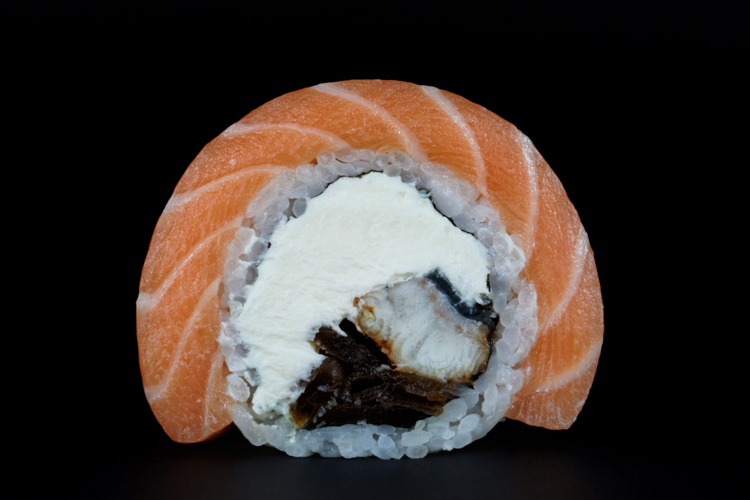 8x california z krewetką w tempurze, owinięta węgorzem i łososiem, 8x california z serkiem philadelphia i tykwą, owinięta opalanym łososiem, 8x california z serkiem philadelphia i awokado owinięta łososiem, 6x futomaki z krewetką w tempurze, ogórkiem, sałatą i majonezem na ostro, 6x futomaki z łososiem, awokado, ogórkiem, serkiem philadelphia i sałatą, 6x futomaki z pieczonym łososiem, serkiem philadelphia, awokado, ogórkiem, tykwą i sałatą
