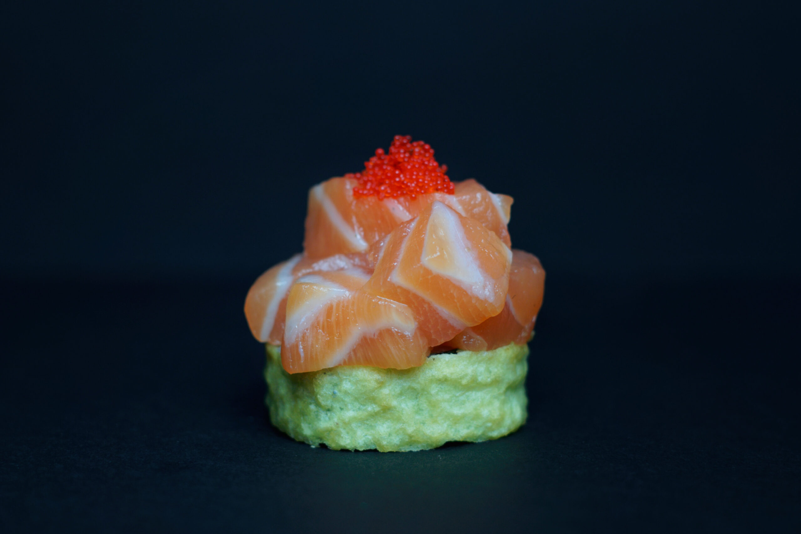 8x california z krewetką w tempurze, owinięta węgorzem i łososiem, 8x california z serkiem philadelphia i tykwą, owinięta opalanym łososiem, 8x california z serkiem philadelphia i awokado owinięta łososiem, 6x futomaki z krewetką w tempurze, ogórkiem, sałatą i majonezem na ostro, 6x futomaki z łososiem, awokado, ogórkiem, serkiem philadelphia i sałatą, 6x futomaki z pieczonym łososiem, serkiem philadelphia, awokado, ogórkiem, tykwą i sałatą